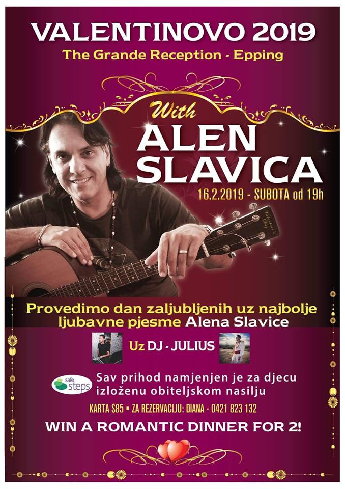 Prošle godine, u februaru, Diana Dinić je organizovala „Miracle babies fundrising function“, na kojem je glavni gost a ujedno i najveća atrkcija bio čuveni kantautor Alen Slavica koga pamtimo po mnogi nezaboravnim hitovima od kojih je svakako najveći evergreen „Dao sam ti dušu“. Sam umetnik je prihvatio ulogu sponzora ove, pre svega, izuzetno humane i ljudske akcije, tako što se evo već treću godinu odaziva pozivu da iz Amerike gde živi, doputuje i bude deo ovog događaja. Tako će biti i ove godine s tim što se ujedno slavi i Dan zaljubljenih, odnosno „Valentinovo“ ili „valentine Day“, kako ga u Australiji nazivamo.