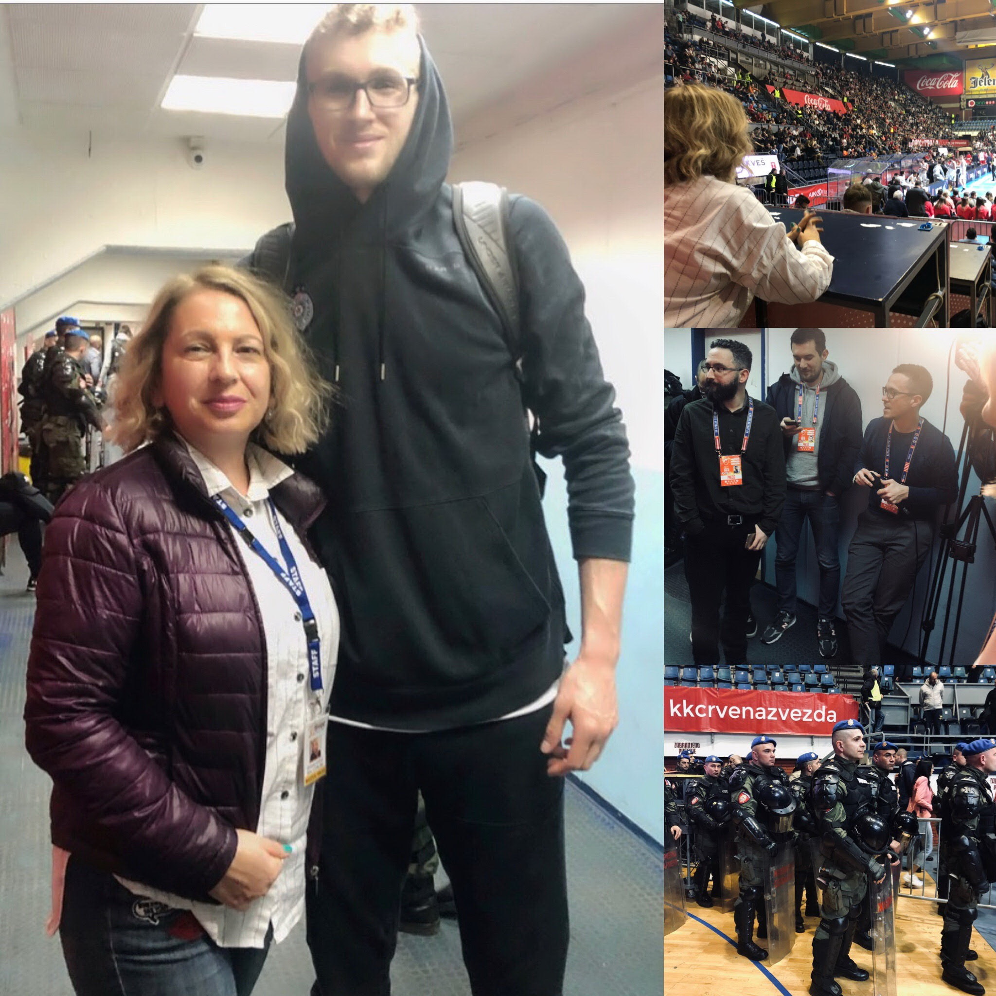 O samoj utakmicu neću mnogo, bila je neizvjesna, početak miran kao i Zvezdini navijači uglavnom a Partizanovih u hali nije bilo. Naravno sem vašeg predstavnika u Srbiji i koji je moram reći iskreno tamo bio crno-bijeli “uljez”. Uprava Crvene Zvezde je KK Partizan dala samo 12 karata, čak i novinarske akreditacije su dobili samo tkz. “zvezdini novnari”.