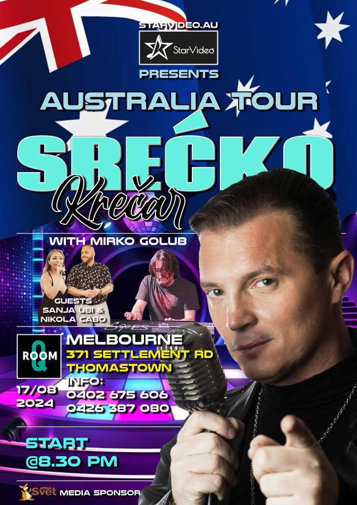 Nema sumnje da će ljubitelji dobre pesme uživati u Srećkovim nastupima. Za sada su u planu nastupi u Adelaidu, 16. avgusta u Balkan Express kafani a dan kasnije, 17. avgusta u Melburnu – sada već čuveni Q-Room (vidi poster u prilogu).