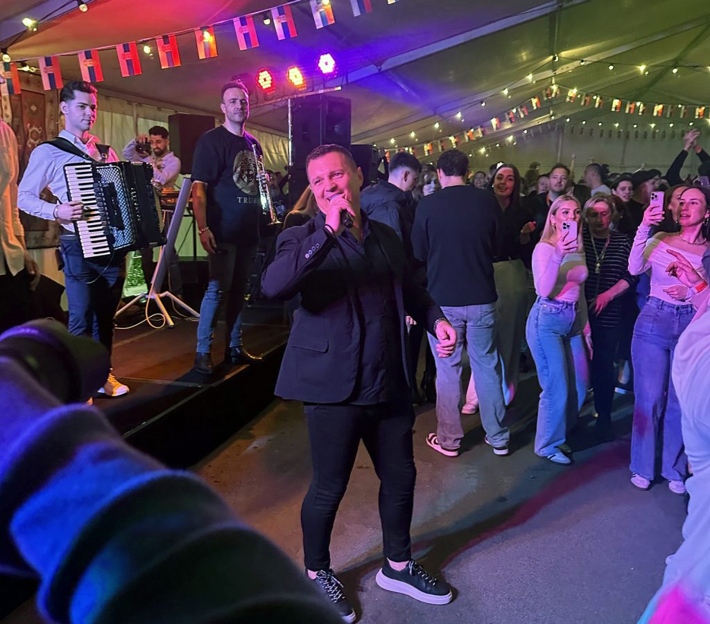 Onog momenta kada sam ušao u šator gde takoreći nije mogla ni igla pasti koliko je bio pun, na bini sam primetio ogromnu grupu muzičara i pevača i ispred njih velemajstor na harmonici Dragan Vujadinović. U liniji sa njim i iza njega, redosled nije bitan, redom: Alesandar Koneski neverovatni mladi muzičar pred kojim je blistava karijera. Takođe mladi harmonikaš Markus, učenik profesora Vujadinovića. Toni Trubač čija truba je nadaleko poznata i popularna uvek u elementu i na visini zadatka. Orguljaš Dragan Milovanović iz Brizbena, po ežrečima kolega muzičara, ništa manje sjajan. Saksofon u rukama Stiva davao je celom ugođaju dodatnu nijansu i lepotu. Toliko o muzičarima.