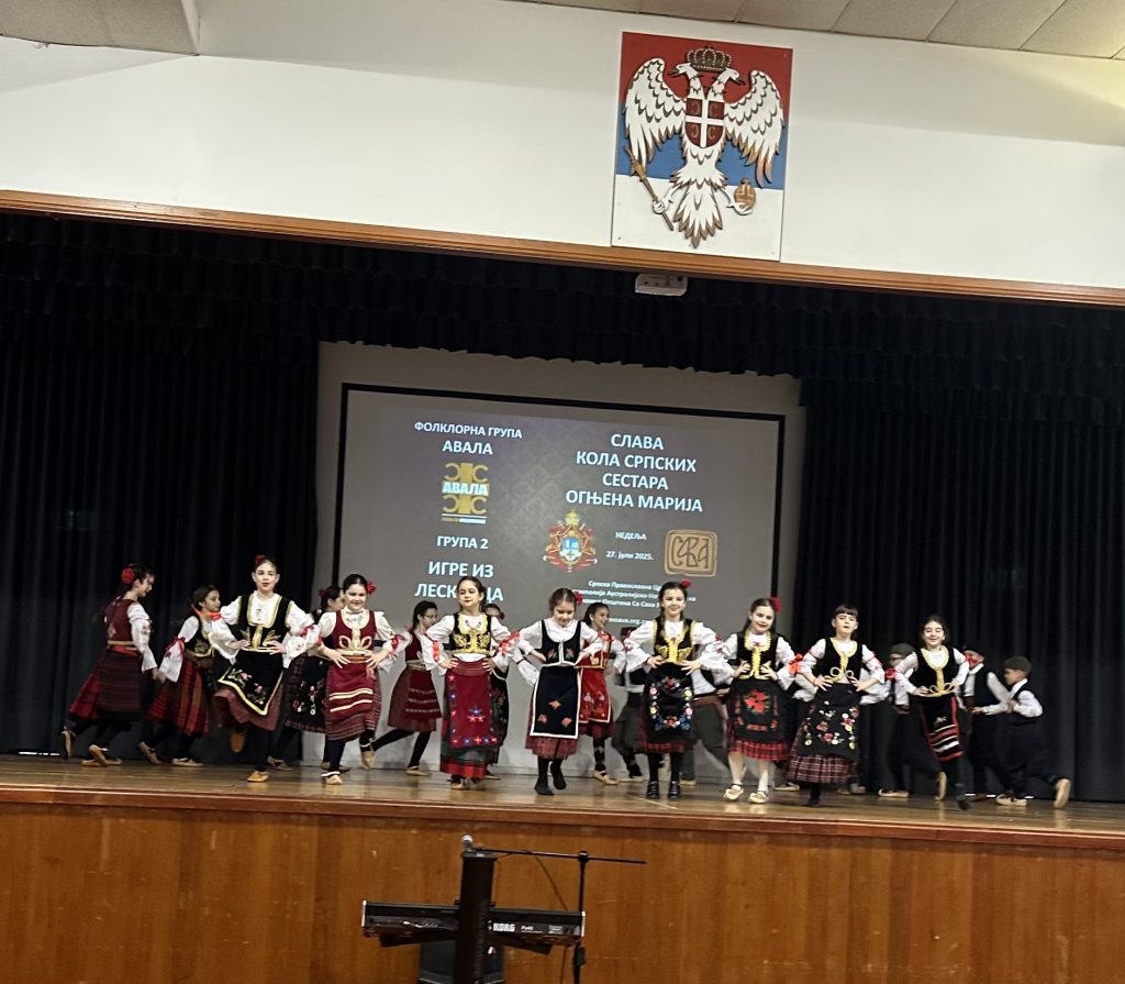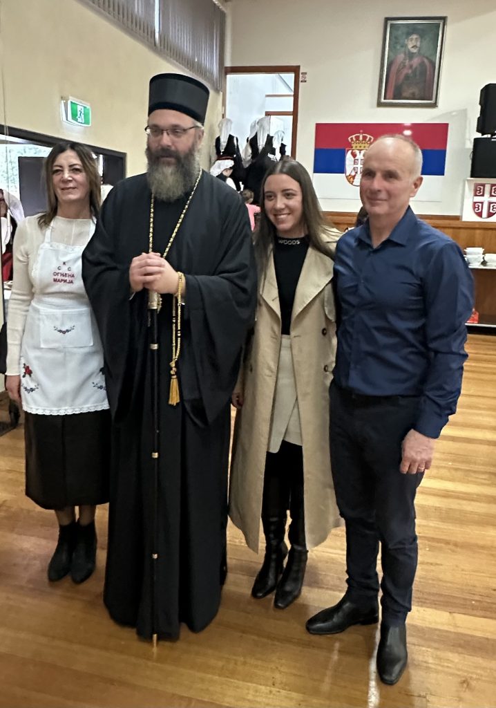Ambijent je bio za pamćenje, jer je osim slavskog ručka to bio i svojevrstan kulturno-umetnički događaj, začinjen nastupima srpskog muškog hora “Sv Georgije” iz Keysborougha, koji predvodi Rus, čtec Zaharija, te domaćina forklorne grupe “Avala” svih uzrasta pod vođstvom koreografa Dušana Bulatovića.