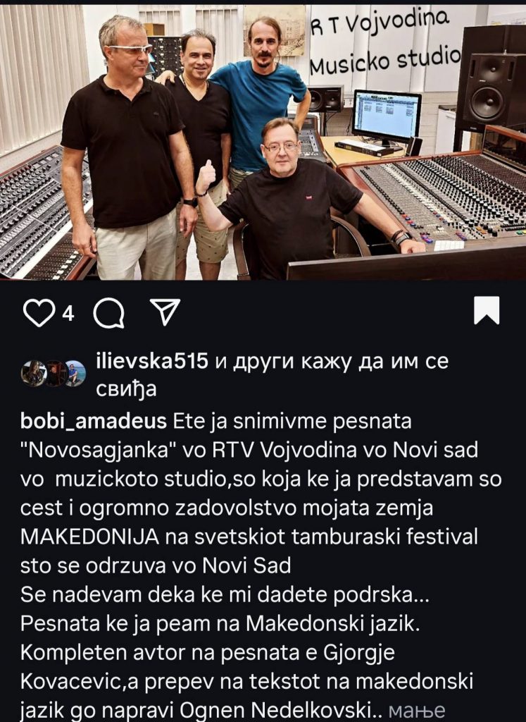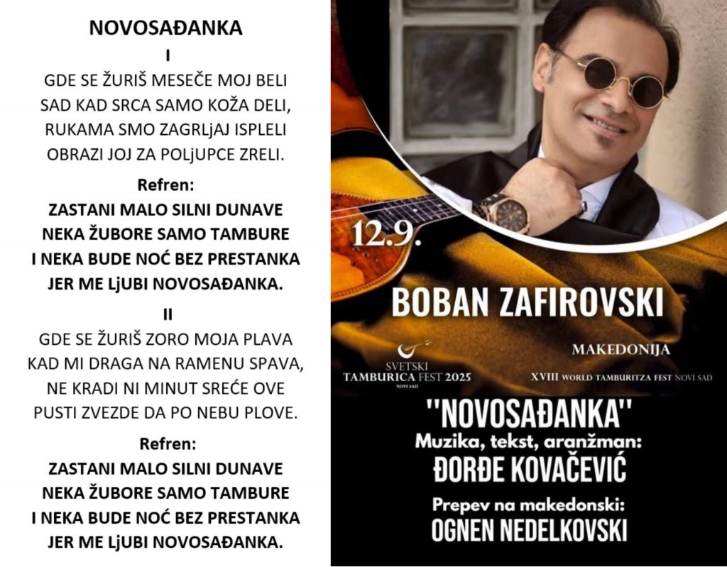 Godinava tokmu na “Mondovizija – Tamburica Fest”- 2025 god, imavme i naš prestavnik, kumanovecot Bobi Zafirovski kaj nas poznat kako Bobi Amadeus, koj ja izvede pesnata “Novosađanka”, od avtorot Džordje Kovačeviќ, na prepev na tekst od Ognen Nedelkovski, i ja osvoi prvata nagrada za najubava kompozicija na festivalot.
