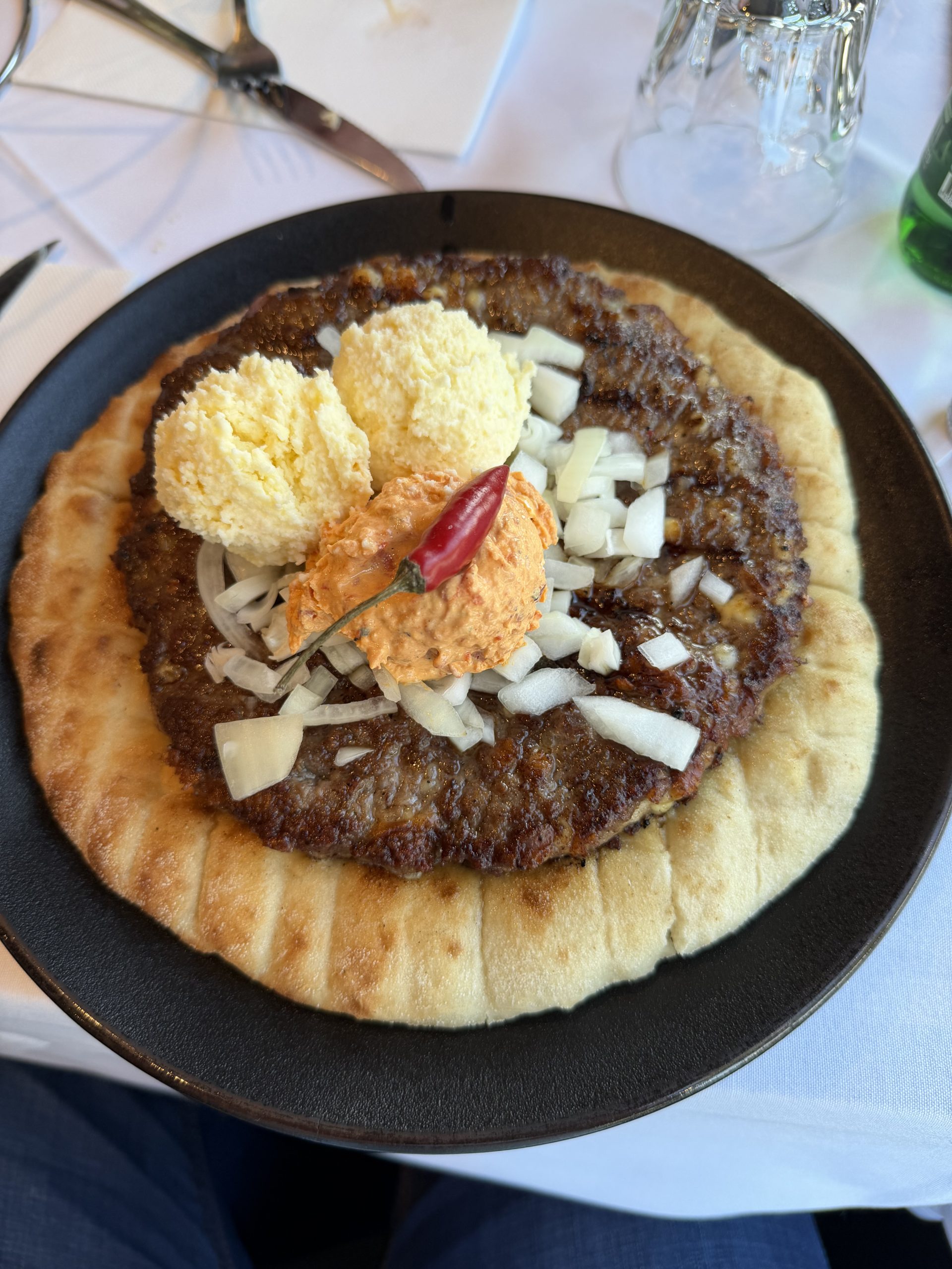 Zalismo to sa špricerom od Tikveške Smederevke i Knjaza Miloša kisele vode. Razumljivo, nismo to mogli pojesti pa nam je spakovano da ponesemo kući.