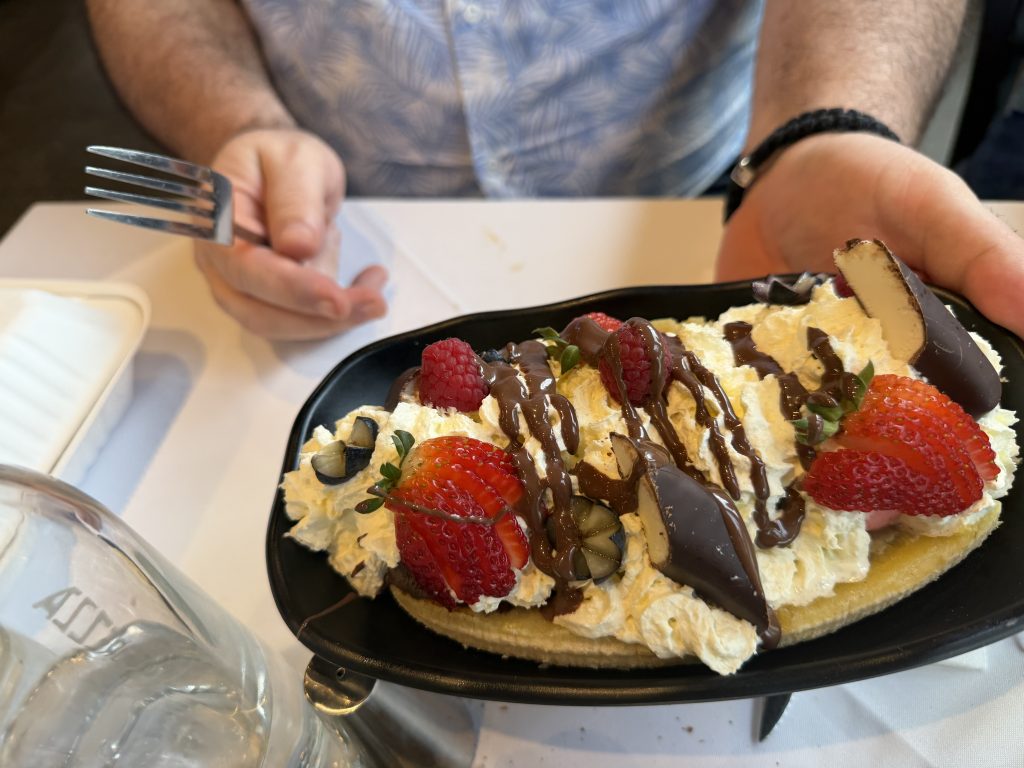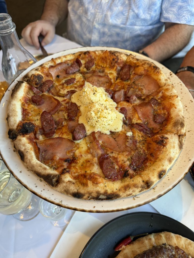 Uskoro na naše ogromno iznenađenje, stiže i Balkan Grill pica koja je imala namenski karakter, to jest, bila je namenjena upravo meni za rođendan. A sam specijalitet neverovatan! Na tankom testu poređano nekoliko vrsti suvog dimljenog mesa i kobasica, a u sredini neizbežni kajmak – Made in Domaći!