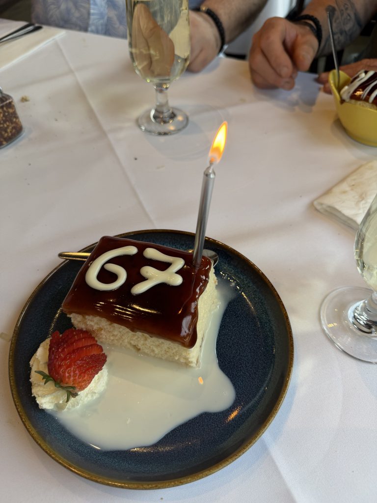 Posebna priča je dezert, trileće, koje je u mom slučaju imalo svećicu i filom ispisanu brojku 67. I, onda, uz uobičajeno “happy birthday”, stiže i prava bosanska kafa sa ratlukom.