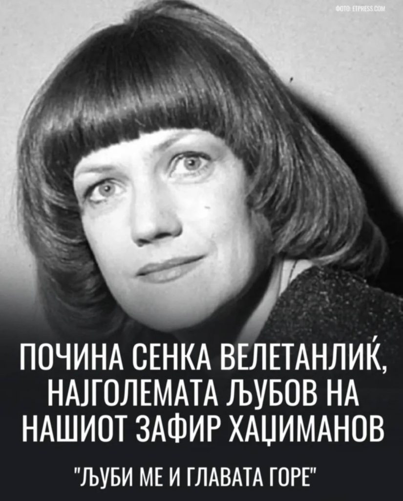 Vo Belgrad, po teško boleduvanje, počina pejačkata Senka Veletanliḱ – žena čij glas, stil i dostoinstvo so decenii bea sinonim za elegancija i vistinska umetnost. Imaše 90 godini. Tažnata vest ja soopšti nejziniot sin, istaknatiot muzičar Vasil Hadžimanov, koj so nekolku zborovi ja opiša i nejzinata životna filozofija:„Zamina tivko, dostoinstveno, vo son, kako dama – tokmu kako što ì dolikuvaše.“