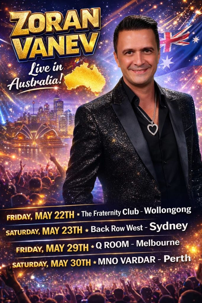 […] Više o samim nastupima Zorana Vaneva na sledećem linku: NAJAVA: SUPERSTAR ZORAN VANEV KRAJEM MAJA DOLAZI NA AUSTRALIJSKU TURNEJU! – Svet Australia | S… […]